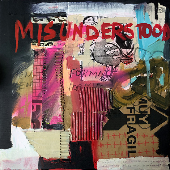 A través de figuras humanas, objetos cotidianos y palabras fragmentadas, las obras exploran la tensión entre el mensaje y el ruido visual. Trazos crudos y composiciones caóticas transmiten ironía, crítica social y un guiño a la cultura popular contemporánea. Cada pieza funciona como un grito visual, cargado de simbolismo y humor ácido.